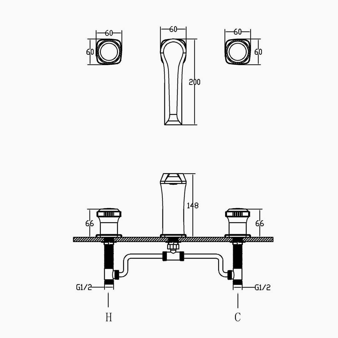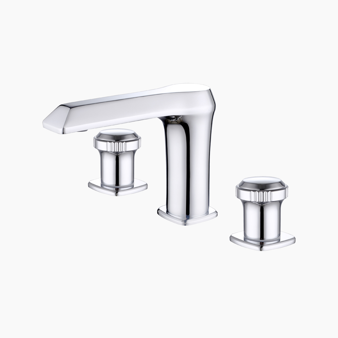 The 3-Hole Basin Mixer is based on a split structure. The double-sided circular hollow handles rise at a 45-degree angle, providing intuitive and smooth operation. The central water outlet and the independent adjustment unit form a clear functional order, with uniform and gentle water flow. The high-quality copper material is precisely cast, with a smooth and wear-resistant surface. The high-performance valve core precisely controls the temperature, achieving an organic unity of structure, function, and aesthetics.