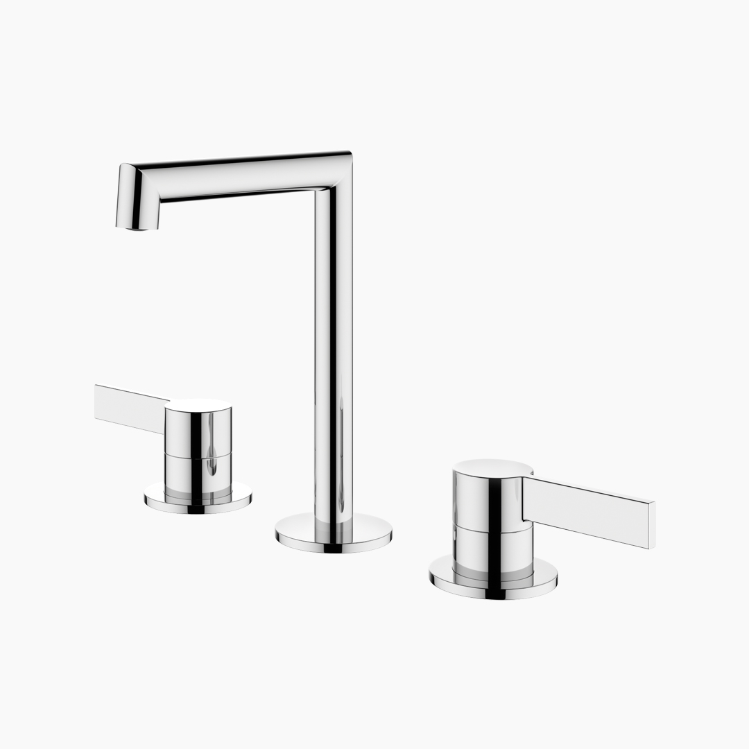The AMBER series three-hole basin Mixer is inspired by the enduring luster of crystal and amber, transforming the traditional three-hole structure into a contemporary artistic expression. The layout of the water outlet and the separate handle is precise and rigorous, echoing like architectural components. The combination of metal and crystal facets breaks the monotony of materiality and presents rich layers under different light conditions, creating a serene and profound visual atmosphere.