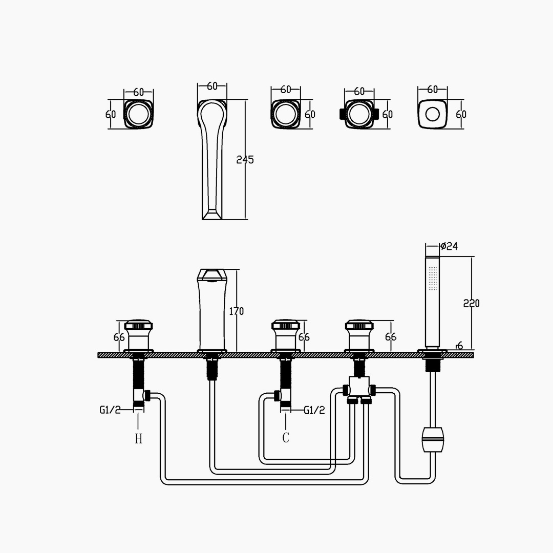 5 Holes Bathtub Mixer separation system design as the core. The water flow of the bathtub is abundant, and the hand-held shower is flexible and convenient. High-quality copper precision casting, fine surface, wear-resistant. The high-performance valve core precisely controls the temperature, achieving an organic unity of function integration, structural optimization, and aesthetic expression.