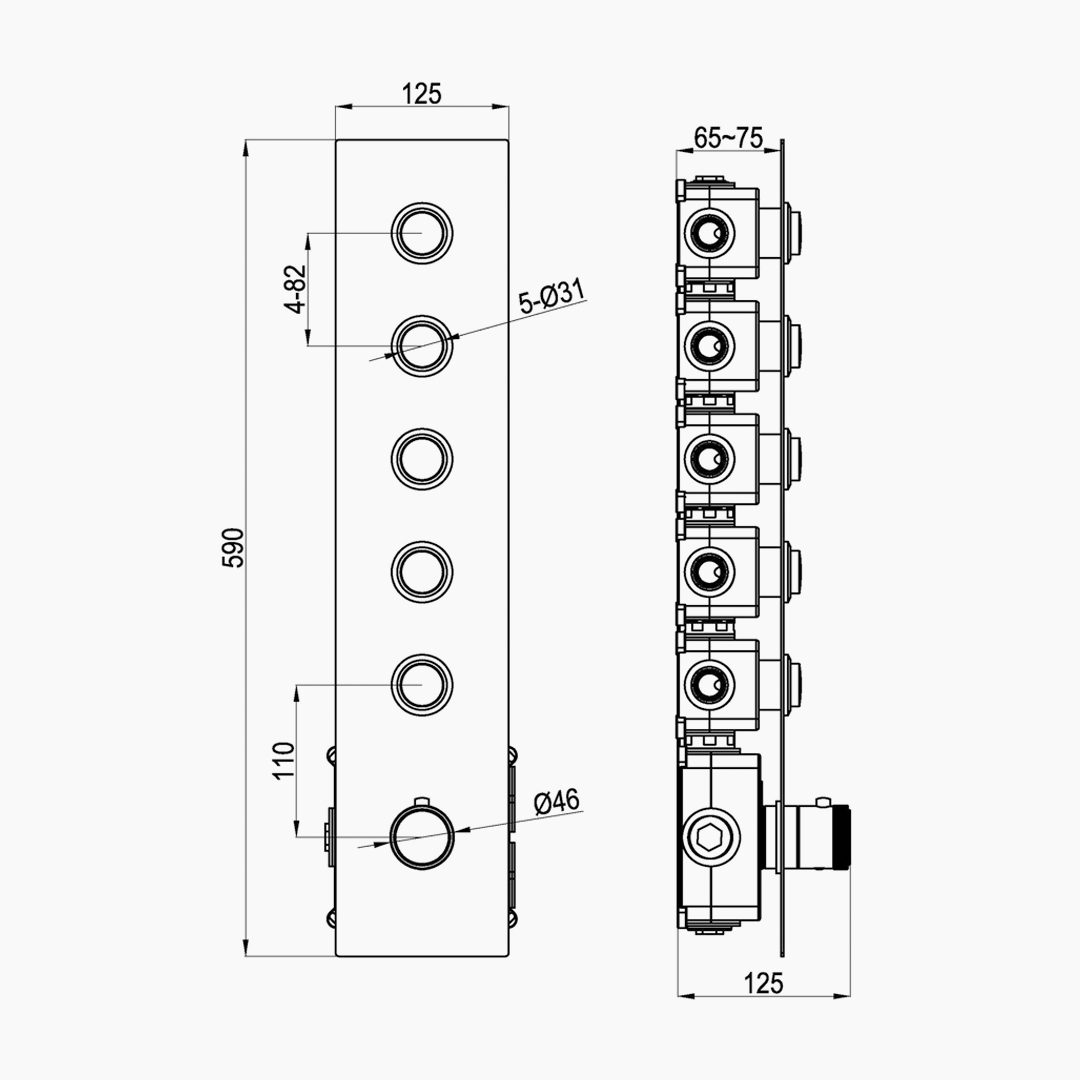 This constant-temperature mixing valve supports independent control of five functions, enabling it to flexibly match various shower forms such as overhead spray, handheld shower head, side spray, waterfall water discharge, and body spray. It meets the ultimate pursuit of a complete shower experience for high-end residences and customized projects. It is equipped with a high-precision constant-temperature valve core, which can quickly respond and continuously output the set temperature in the event of water pressure and water temperature fluctuations, effectively enhancing safety and comfort. The internal waterway system is designed with multi-layer zoning according to engineering standards, ensuring stable water pressure and smooth water discharge even under frequent multi-function switching or high-load usage conditions.