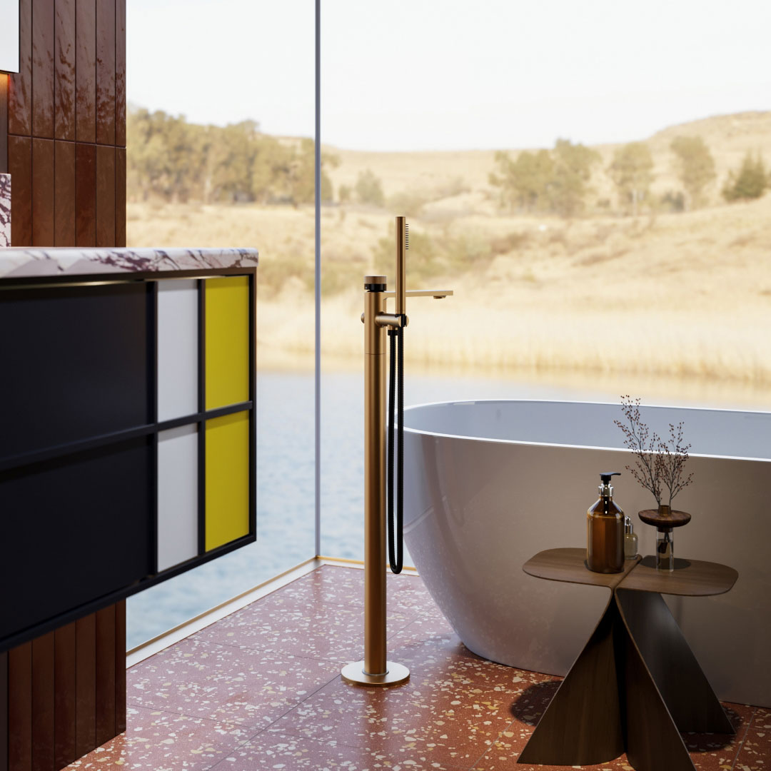 The Mondrian series floor-standing shower/bathtub mixer 15 3801 is carefully designed to bring a blend of fashion to your bathroom. It is made of quality brass and is corrosion-resistant. The surface can withstand daily use. The quality Sedal spool ensures smooth operation and precise adjustment of hot and cold water for an always comfortable bathing experience. Dual-function design enables it to switch easily between the water outlet and the handheld showerhead. Floor installation builds a striking visual effect, promoting a modern bathroom with a legant appearance of aesthetic feeling. With an intuitive single-rod hand, the water flow is effortless. 15 3801 combines sturdy materials with refined design, making it ideal for bathrooms seeking refinement and performance.