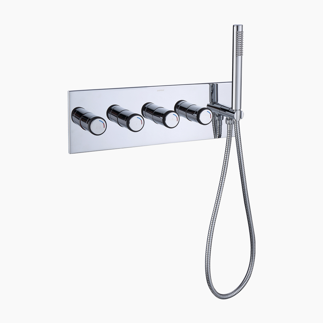 In terms of design logic, the four-function concealed mixer valve emphasizes “the expression of order beneath complexity”. Each control unit forms a unified system in terms of visual proportion, rotational damping, and operational feedback, ensuring that the multi-function switching remains intuitive and clear. The concealed installation structure effectively reduces interference with the wall surface, releases spatial continuity, and makes the bathroom present a purer and more sophisticated visual hierarchy. This product is not only a water flow control device, but also the central and structural core of the shower system. Based on engineering rationality, through artistic refinement and form elevation, it provides a high-end solution for modern bathroom spaces that combines technical depth, aesthetic tension, and long-term stability.