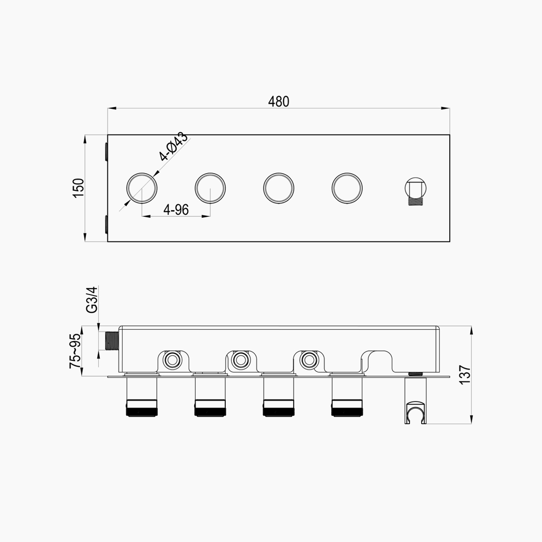 As the core of four-function control, this mixing valve can independently or in combination manage up to four water supply systems, suitable for various shower configurations such as overhead spray, handheld, side spray, and waterfall. It provides highly flexible water system solutions for high-end residential and hotel projects. The valve body is precisely cast from high-purity copper, and the internal flow channels are optimally designed to ensure stable water pressure and precise temperature control even when multiple systems are used simultaneously or switched. The pre-installed box is completed during the construction stage for structural protection and precise positioning, effectively enhancing the overall installation standardization and system reliability.