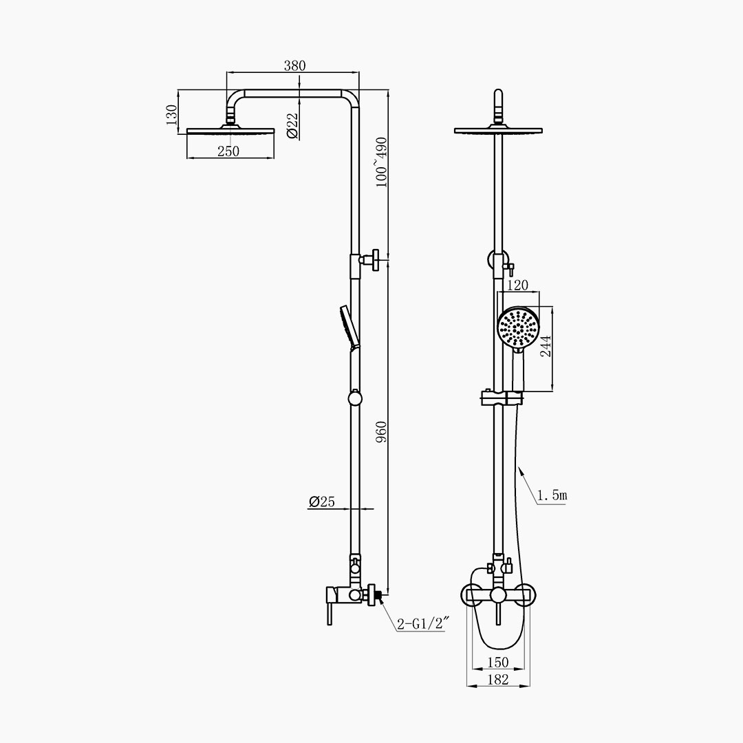 This Rain shower combination features the top spray, handheld, and lifting structures through a systematic design, creating an orderly overall showering solution. The balanced proportions and smooth lines shape a stable and rational visual form. Various color finishes can flexibly adapt to diverse styles. Waterway optimization ensures that the top spray rain is uniform and soft, the hand is flexible and convenient, and the control is accurate and stable. High-quality copper and precision technology guarantee durability and corrosion resistance. Blend classic aesthetics with engineering performance to deliver an elegant, lasting shower experience in the bathroom.