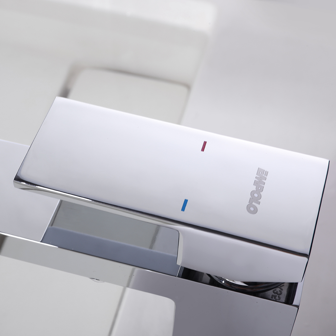 The Empolo Trotanoy 25 1101 single-lever bathroom sink mixer taps showcase a contemporary square-line design that reflects modern architectural aesthetics. Crafted from solid brass and finished in elegant chrome, it integrates a 35mm Sedal cartridge and Neoperl aerator for smooth water control, durability, and water efficiency, making it perfect for modern bathrooms.