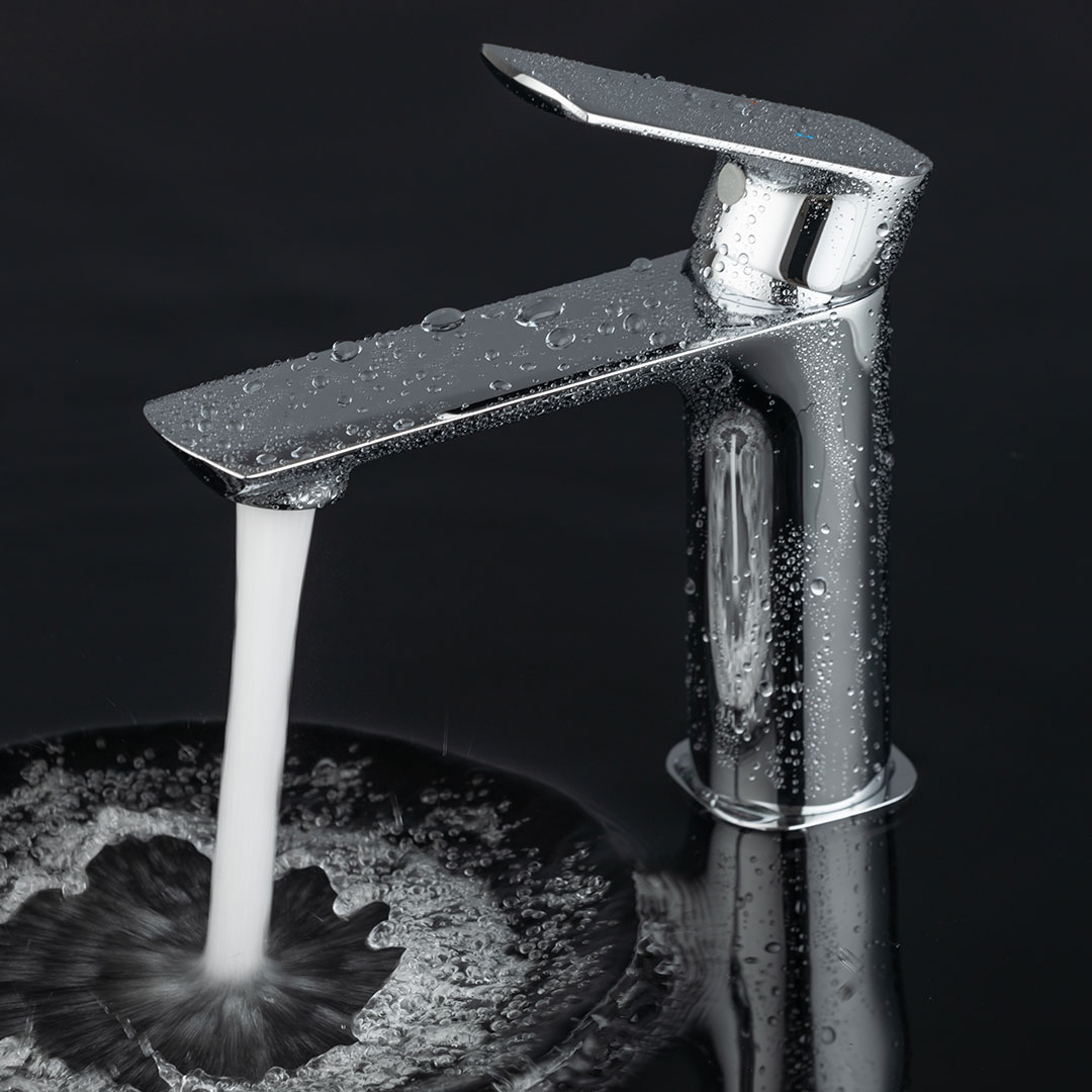 The OSLO Single-Handle Basin Faucet 72 1101 interprets elegance through curved arcs and square lines. Crafted from solid brass and equipped with a Sedal cartridge, it delivers precise control of water temperature and flow. This faucet is simple yet sophisticated, providing a comfortable bathing experience and is the perfect choice for a bathroom faucet.