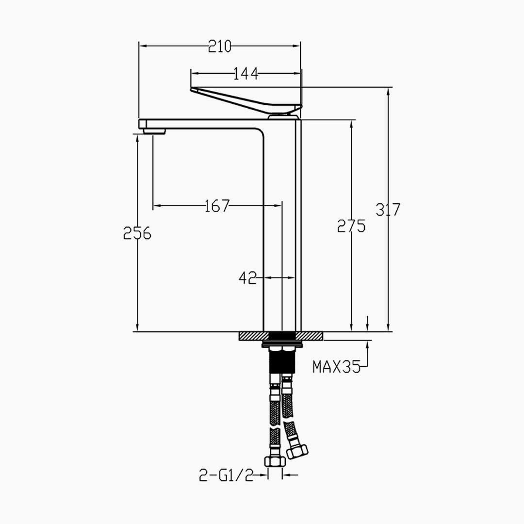 The high-profile structure is specifically designed for the countertop basin and open countertop. It stretches the longitudinal proportion of the product, making the water flow more smoothly and effortlessly, reducing water splashing and enhancing the overall comfort of use. The main body is made of high-quality copper and is formed as a single piece, featuring excellent corrosion resistance and structural stability. It can operate reliably for a long time in various water quality environments. The surface undergoes multiple layers of precise electroplating treatment, presenting a fine and uniform metallic luster while enhancing wear resistance and oxidation resistance, ensuring the product remains fresh and durable over time.
