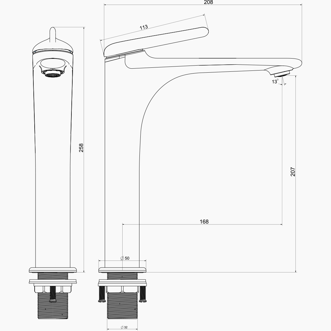 The Italian dawn inspires the Alba Single-lever High Basin Mixer. It features a slender and elegant proportion with a smooth and upright appearance. The metal surface presents a soft and layered light effect. It is made of high-quality copper through a single-piece casting process, which is durable and resistant to corrosion. The single handle integrates a high-precision valve core, precisely regulating water temperature and volume, and ensuring uniform and gentle water output. Details give attention to human body engineering and aesthetics, and on the platform basin harmony. With a serene and pure design, it brings a calm and quality experience similar to the morning to daily washing.