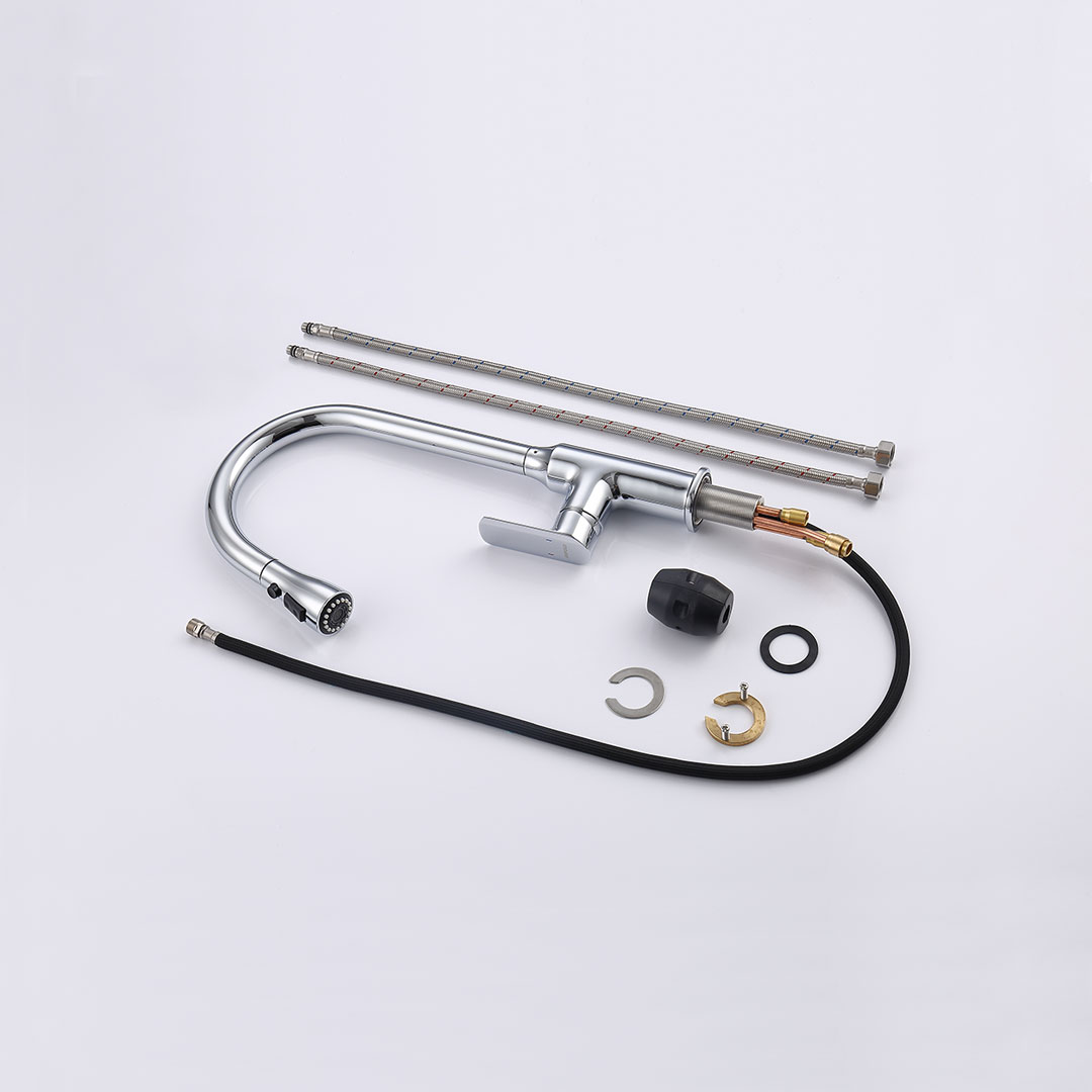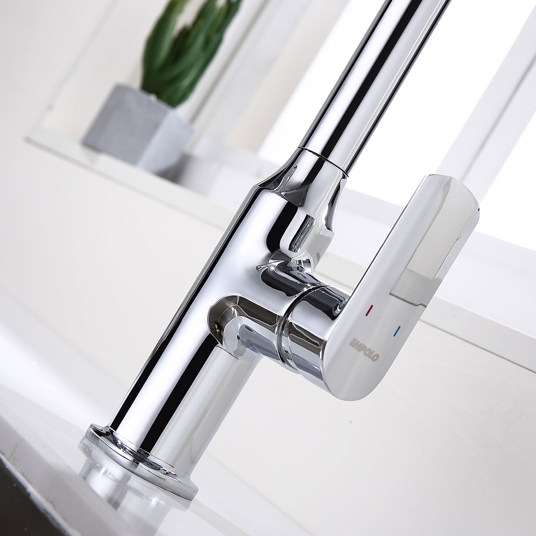 The OSLO 72 2101 kitchen faucet perfectly combines exquisite craftsmanship with daily practicality. Its simple design combines straight lines and curves, effortlessly highlighting an elegant demeanor. The single handle can smoothly control cold and hot water, while the pull-out nozzle offers two water outlet modes, which can not only precisely rinse but also easily clean.