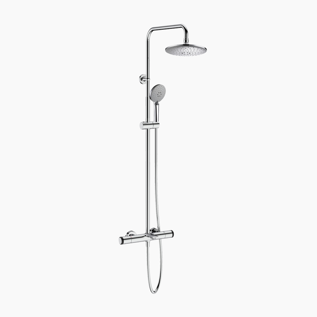 Single-lever Thermostatic Shower / Bath Combination is designed based on the principles of “generalization, refinement, and artistic exaggeration”. It integrates the complex water supply and temperature control systems into a simple yet powerful form. The design is not a direct imitation of natural forms, but rather, through repeated deliberation on proportions, volumes, and contours, it extracts a more orderly geometric expression, making the product visually present a stability and power that surpasses the natural prototype. The horizontally extended main structure and restrained turning treatment create a clear and rational spatial interface, making it a functional core with architectural attributes in the bathroom.