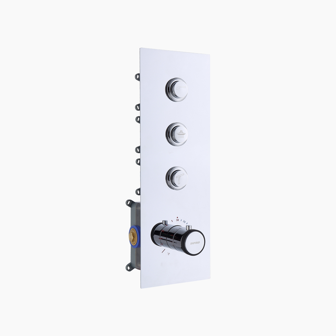The concealed structure is combined with dedicated pre-installed boxes, hiding the complex functional system within the wall, while only retaining a simple and orderly external control interface. This enhances the overall integrity and purity of the space. The appearance proportions have been repeatedly refined and compressed to reduce the presence of the device, allowing the product to naturally blend into the architectural structure of the bathroom. As an important control core that connects technical performance and artistic expression, the three-function constant temperature concealed mixing valve achieves a balance between rich functionality and restrained design, providing a safe, stable, and highly designed overall shower solution for high-end bathrooms.