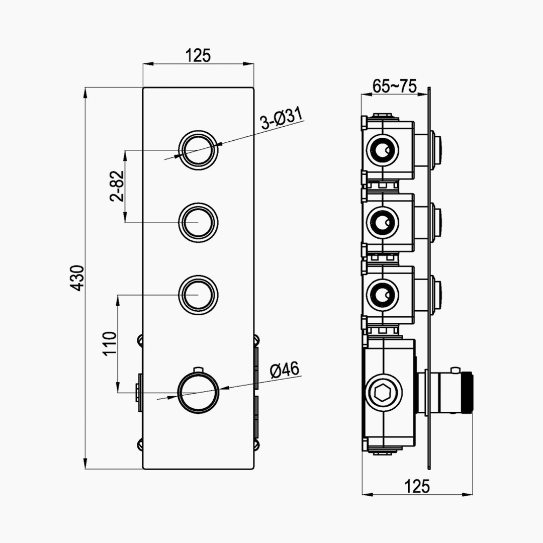 This constant-temperature mixing valve supports independent control of three functions, enabling it to flexibly match various water outlet forms such as overhead sprays, handheld shower heads, and side sprays. It is equipped with a high-precision constant-temperature valve core, which can quickly respond to changes in water pressure and water temperature, maintaining the set temperature steadily and effectively enhancing safety and comfort during use. The internal waterway structure is designed with engineering-grade standards for division, ensuring smooth water flow and precise flow control even when switching between multiple functions and maintaining constant temperature simultaneously, making each operation stable and reliable.