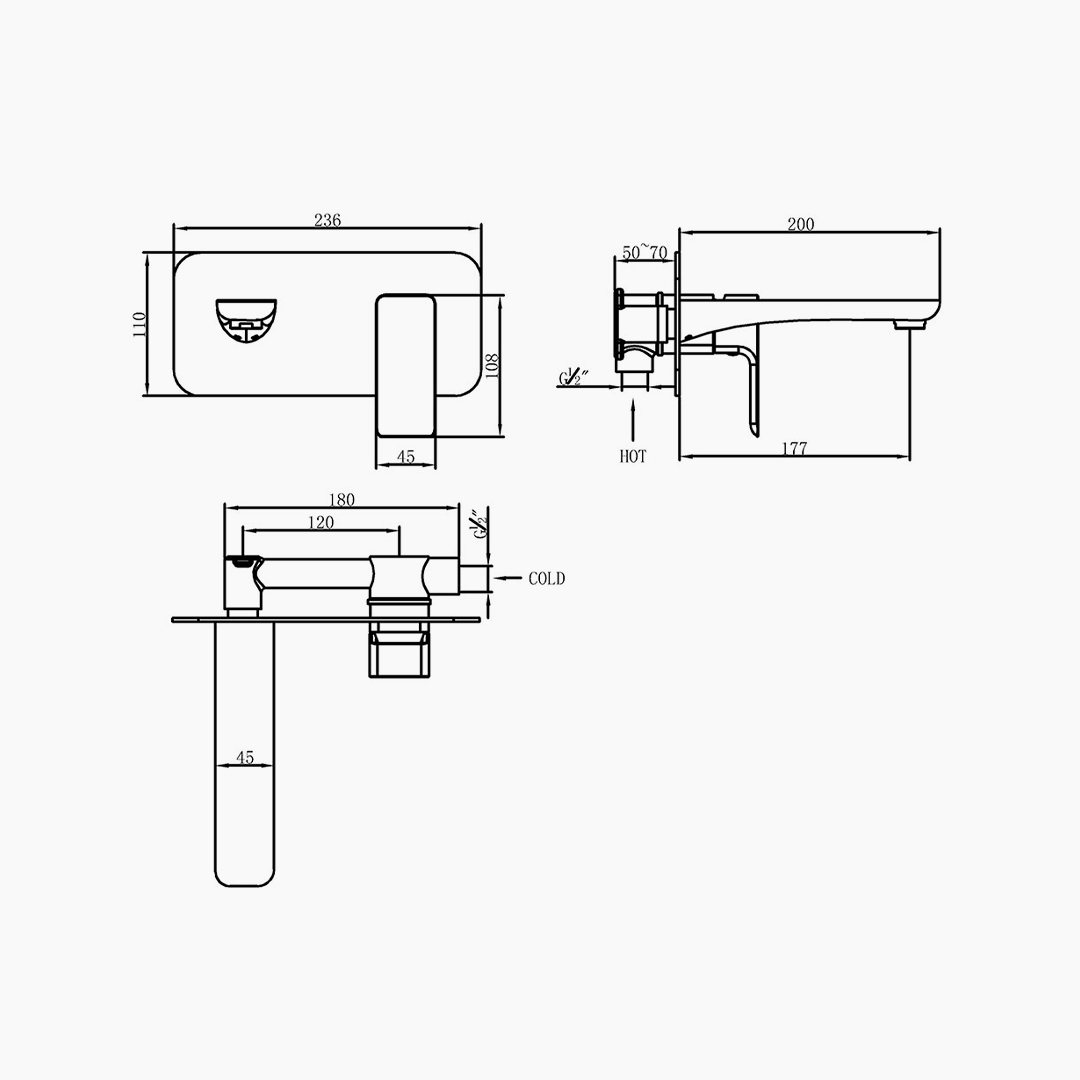 The wall-mounted basin mixer is based on a unified design language of the series. Through the combination of sharp straight lines and curved corners, it creates a clear and layered overall form. The visual expression emphasizes horizontal extension and space blank, so that the product presents a light and restrained structural beauty on the wall, and effectively enhances the overall order and advanced texture of the bathroom space.