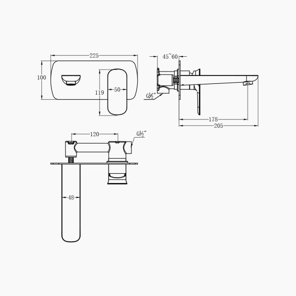 In terms of shape and structural design, the Wall-mounted Basin Mixer adopts a rational and restrained design language, with the water outlet and control components forming a clear and harmonious layout on the Wall. The horizontally extending water lines are like unfolded wing surfaces, visually stretching the spatial scale while maintaining structural stability and operational convenience. The concealed installation structure effectively reduces exposed components, making the countertop area neater. It not only meets functional requirements but also provides greater freedom and aesthetic appeal for bathroom design.