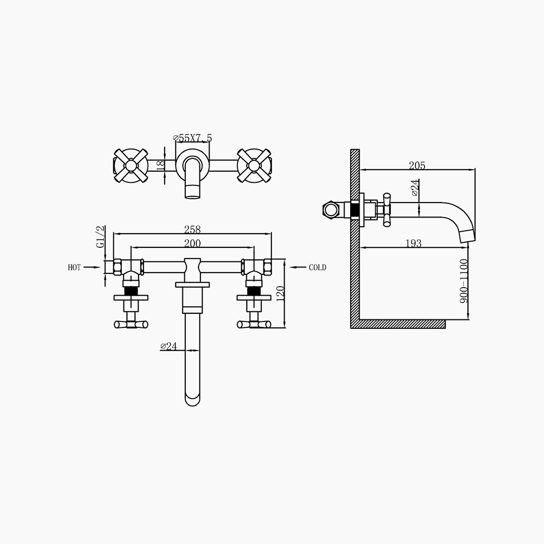 Wall-mounted Basin Mixer reorganizes the spatial order of the basin area with a wall-mounted structure, achieving a highly pure expression of the interface through a concealed waterway layout. The product embeds the functional core into the wall, retaining only the refined water outlet and control handle, making the visual aspect cleaner and more restrained. Its design does not pursue external flamboyance; instead, it establishes a rational structural balance between stable proportions and clear contours, presenting a natural, classic, and enduringly attractive overall atmosphere for the bathroom space.