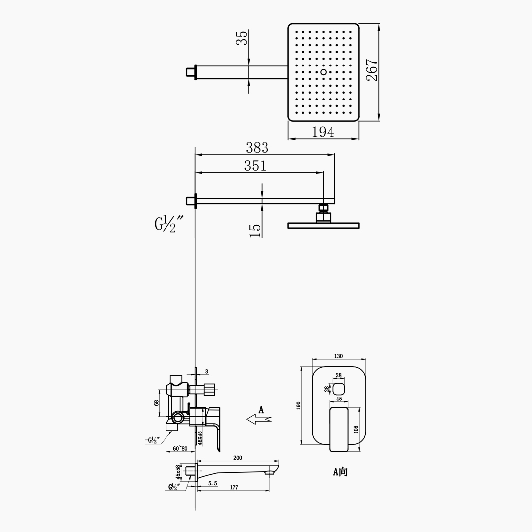 The wall-mounted shower / Bath Mixer is based on a series design system. Through the straight and neat linear structure and the delicate connection of arc-shaped corners, it creates an overall form that combines orderliness and friendliness. The design language emphasizes restraint and purity, achieving clear functional expression with the least visual elements, making the product present a simple and unified interface effect on the wall, enhancing the overall modernity and harmony of the space.