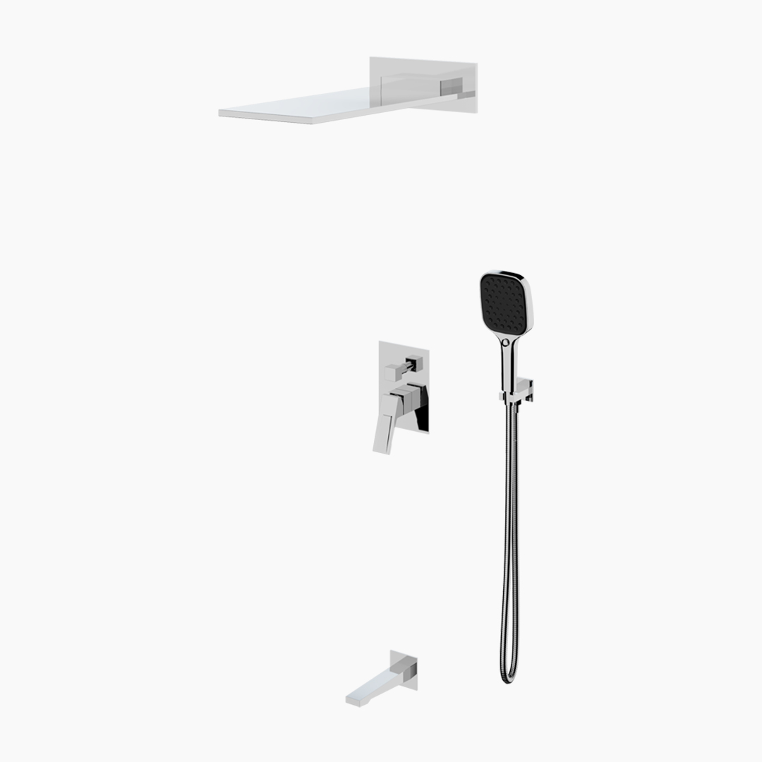 The Wall-mounted Shower/Bath Mixer takes the design concept of breaking through the traditional faucet-structure as the core, integrates futuristic aesthetics and rigorous engineering logic into the wall-mounted system, and redefines the existence way of bathroom water devices in the space. By concealing the main structure within the walls and retaining only highly condensed exposed interfaces, the product visually achieves a pure and restrained order expression, making the bathroom space more spacious, tidy, and architecturally rich. The exposed components continue the series’ signature multi-section geometric shapes, with sharp and precise lines like precisely calculated three-dimensional modules, presenting a strong sense of structural stability and a futuristic temperament. As light refracts and flows across different sections, the metal surface forms a rich gradation of light and dark, giving the rational geometry an artistic visual tension.