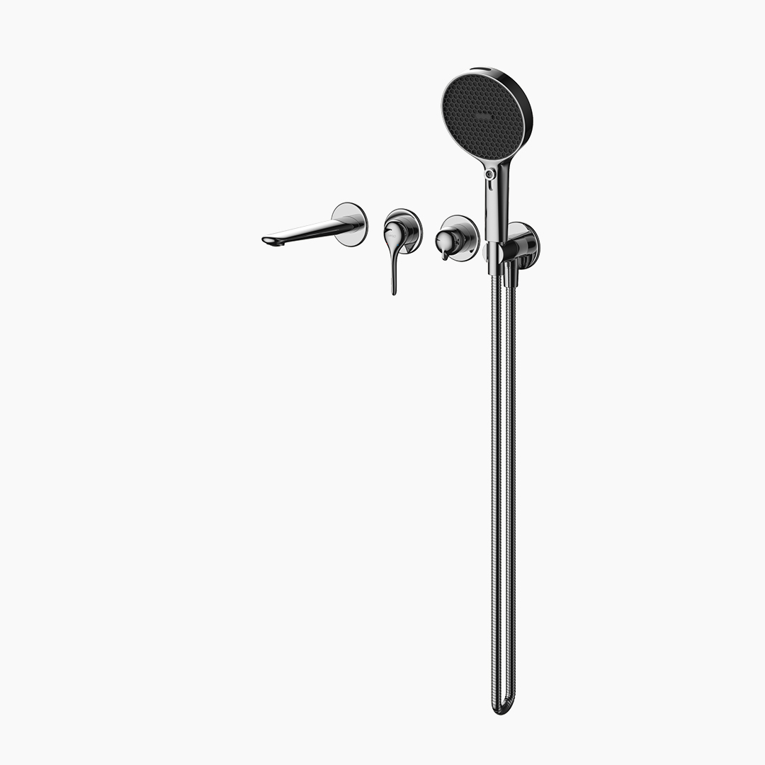 In terms of detail handling, the Alba series continues to deeply consider the integration of humanization and design unity. The operation handle has a harmonious proportion and a smooth touch, conforming to ergonomics and enhancing the comfort of use; the layout of each functional interface is clear, enhancing the convenience of daily operations. This wall-mounted shower/bath combination faucet integrates natural inspiration with modern craftsmanship through restrained and precise design language. As the water flows open and close, it creates a serene, composed, and highly ritualistic bathing space experience.