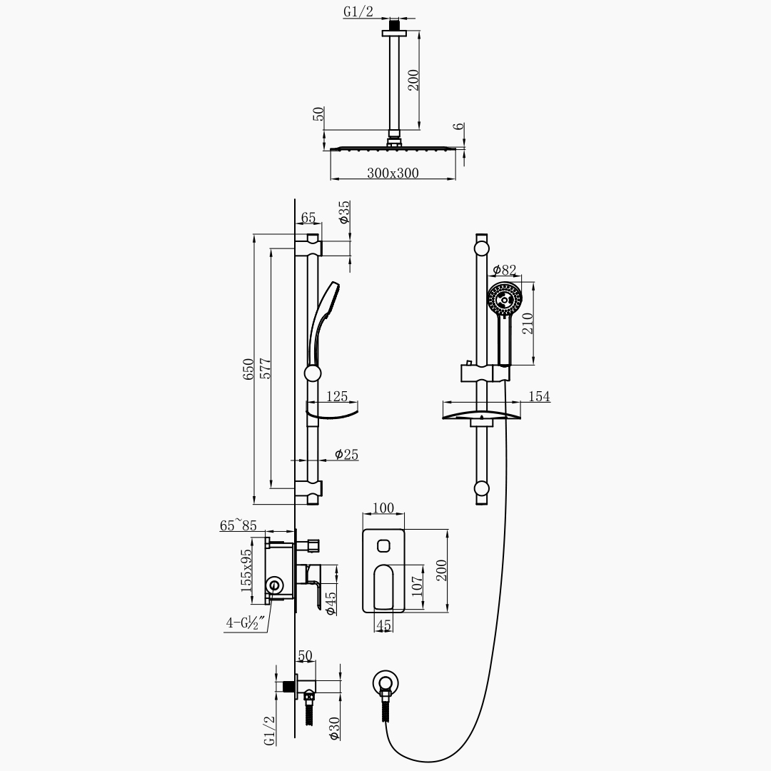 In terms of functional design, the single-handle control system is based on ergonomic principles, enabling precise adjustment of water temperature and water volume. The operation is smooth and natural. It is equipped with a high-performance ceramic valve core, which is sensitive in opening and closing and has reliable sealing, effectively reducing the risk of leakage and ensuring the long-term stable operation of the system. The design of the water outlet control interface is reasonable, allowing for flexible connection with various shower configurations to meet different usage needs. The water flow output is stable and uniform, showing good adaptability under different water pressure conditions, and also taking into account water-saving performance.