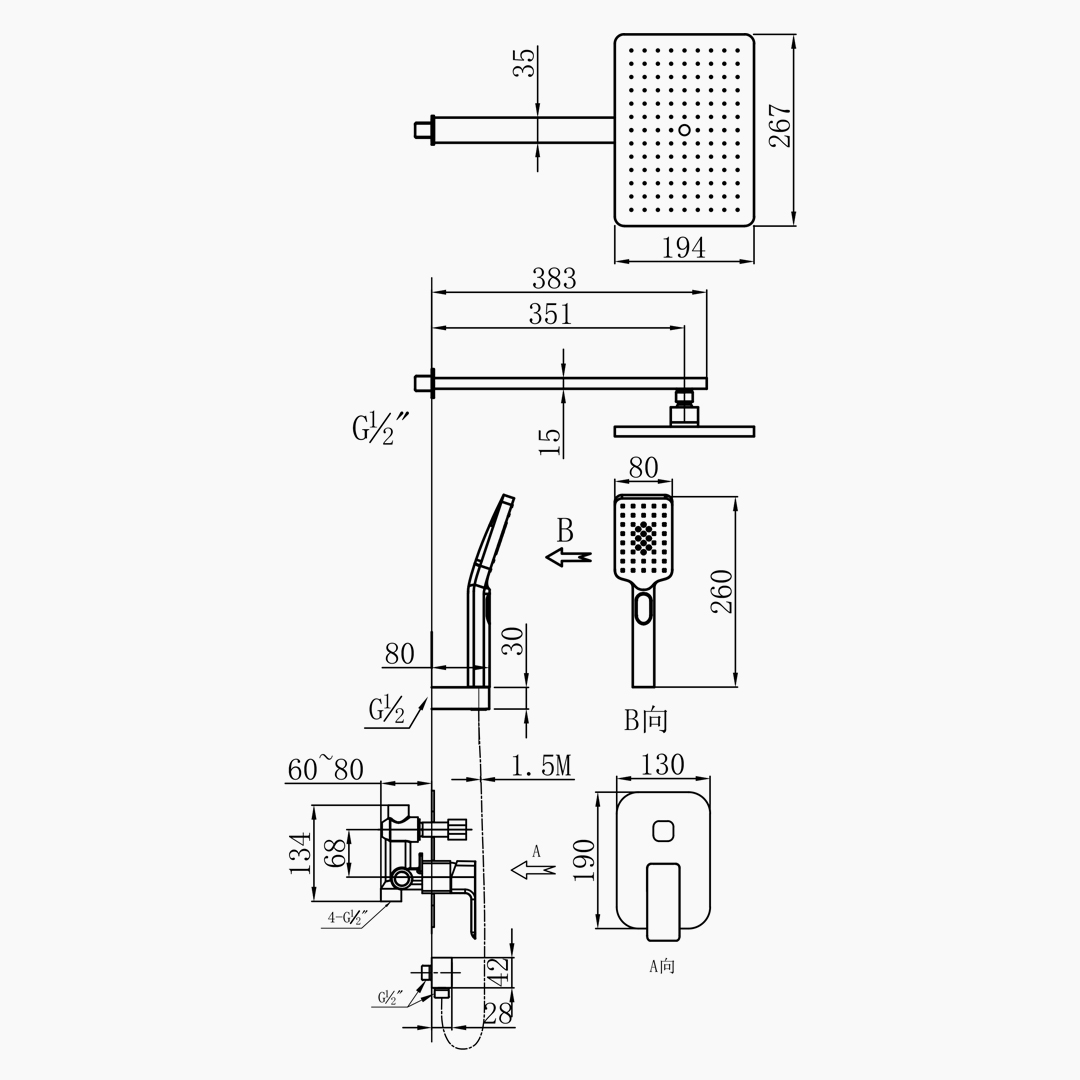 The wall-mounted shower mixer is centered around a series of overall design elements. Through the firm and orderly linear structure and the flexible transition of arc-shaped corners, it creates an appearance that combines rational order and gentle temperament. The design emphasizes horizontal extension and interface integration, making the product form a unified and simple visual expression that harmonizes with the wall, while reducing spatial interference and enhancing the purity and modernity of the overall bathroom environment.