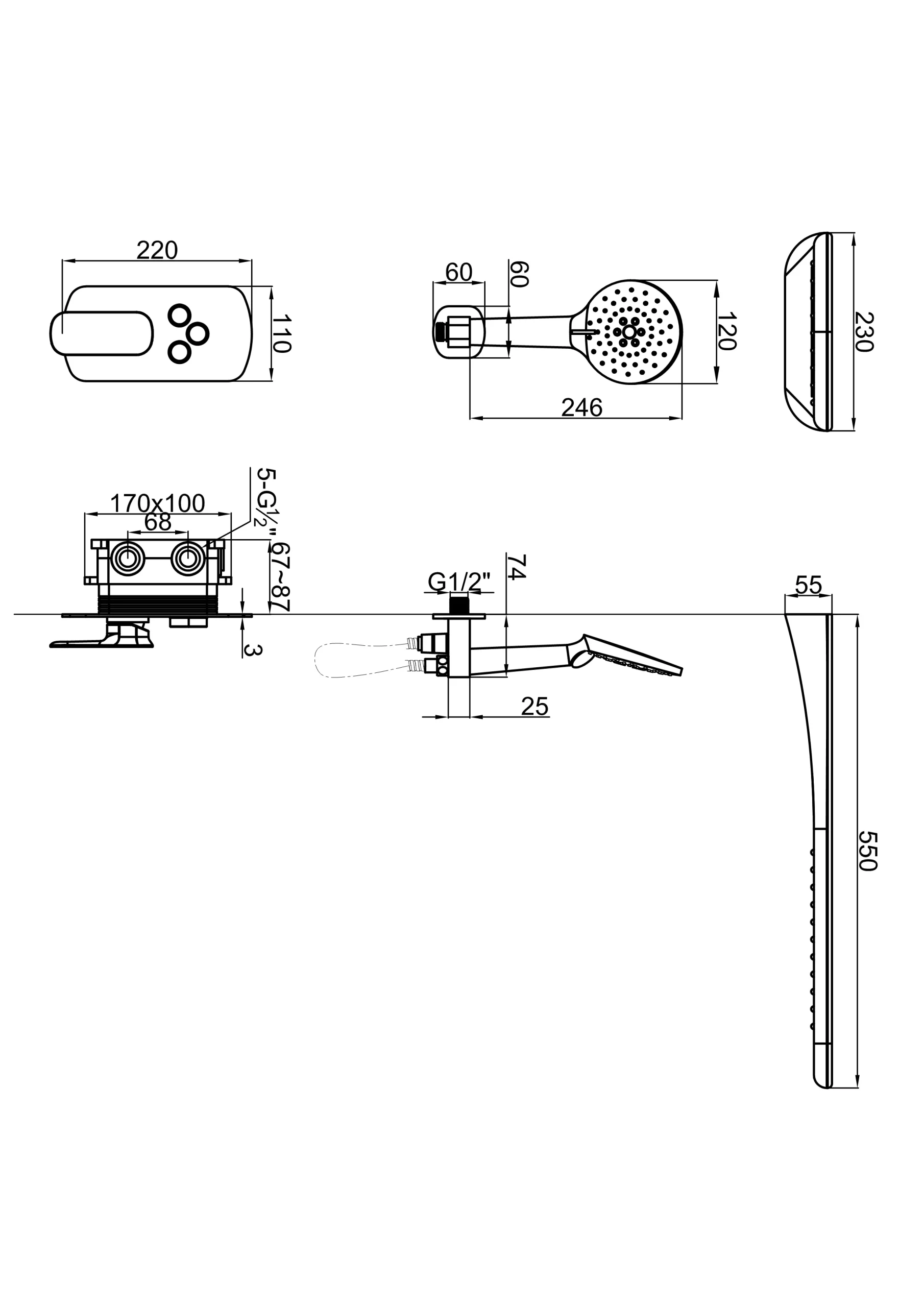 In terms of shape and structural design, the Wall-mounted Shower Mixer adopts a rational and restrained design language, integrating the water mixing control system inside the Wall and retaining only the necessary operation interface. The simple geometric contours and balanced proportional relationship create a unified and harmonious overall effect between the product and the wall. The single-handle control structure features a clear layout and a smooth, natural operation path, ensuring stable and predictable feedback during adjustments to water temperature and volume, and enhancing the safety and comfort of use.