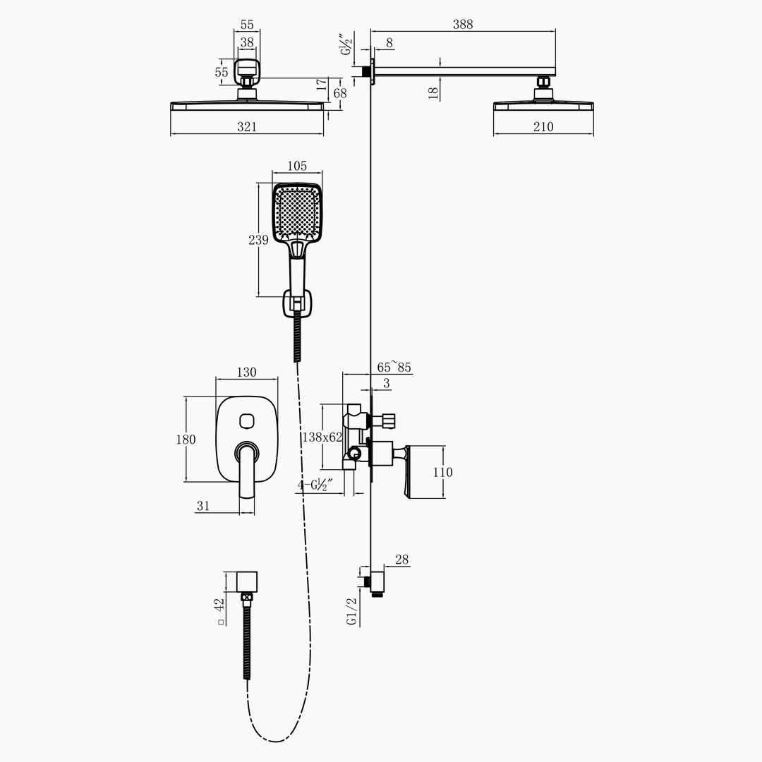 The wall-mounted design integrates the product with the wall, reducing spatial interference, enhancing the overall tidiness and modernity, while increasing space utilization, facilitating cleaning, and daily maintenance. The single-handle control system has a clear logic, and the water volume and water temperature adjustment are smooth and stable. The operation process is natural and intuitive, meeting the needs of different usage habits. The internal waterway structure has been systematically optimized to ensure a stable and soft water outlet, effectively reduce the noise of water flow, make the shower process more comfortable and relaxed, and create a balanced experience like the flow of lake water.