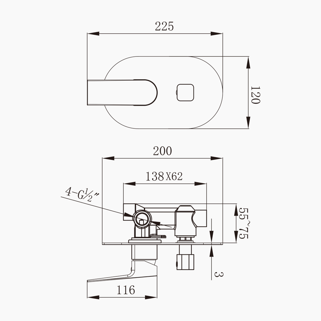 This series of copper wall-mounted shower valves is inspired by the Doric column, integrating square and round geometry, concealing the waterway system within the wall, and presenting only a simple and rational operation panel. Its minimalist lines are compatible with both modern and classic styles, optimizing spatial order and a sense of purity. The single-handle control is precise and smooth, providing a stable and comfortable shower flow. The high-quality copper valve body and precise craftsmanship inside ensure reliable sealing and durability in long-term humid environments, providing an ideal core control solution for modern bathrooms that emphasize design depth and performance.